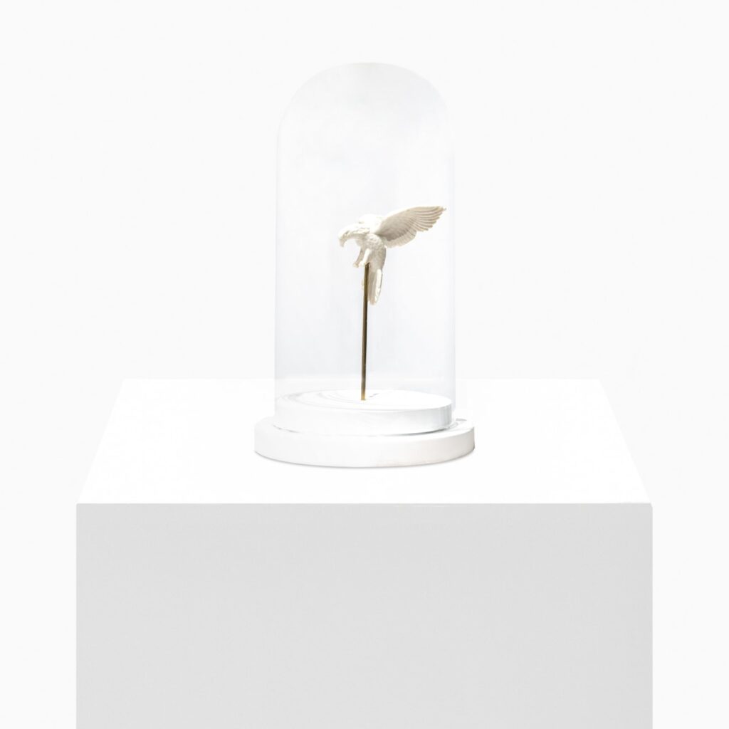 Al igual que en los textiles de Devastations, la fragilidad de la porcelana subraya la naturaleza precaria del entorno que representan. Algunas de las flores están contenidas en campanas de vidrio, como si fueran especímenes preservados de un entorno perdido.